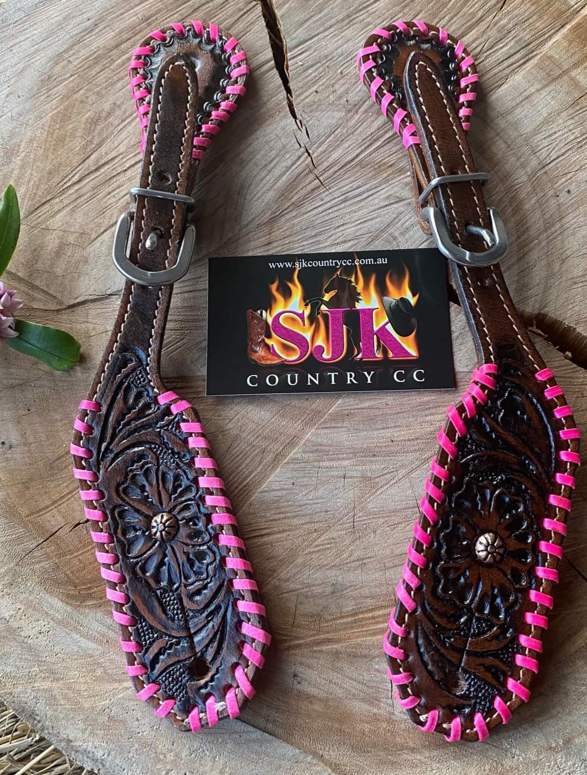 Hand painted cactus and tooled sunflower design, contrast whipstitch, antique silver hardware