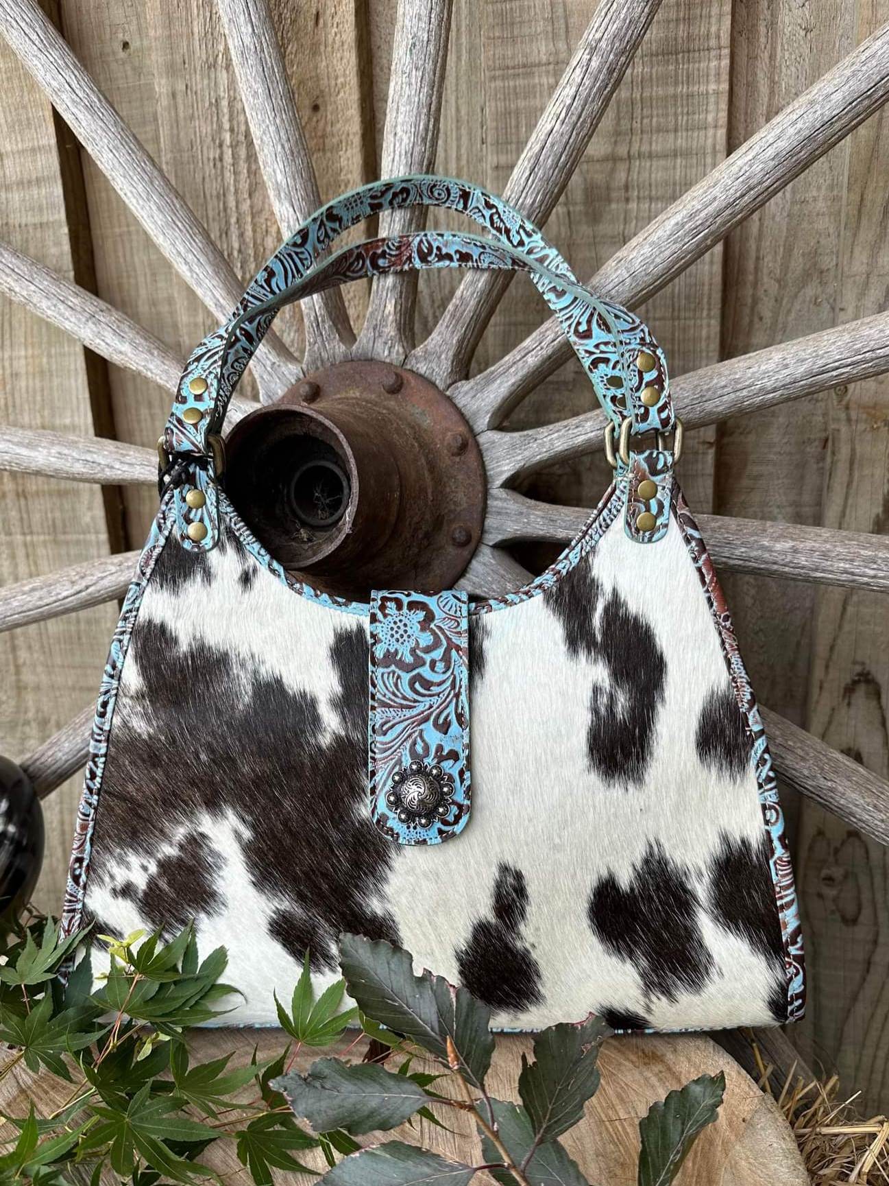 Western Hide & Leather Emobossed Turquiose Crossbody
