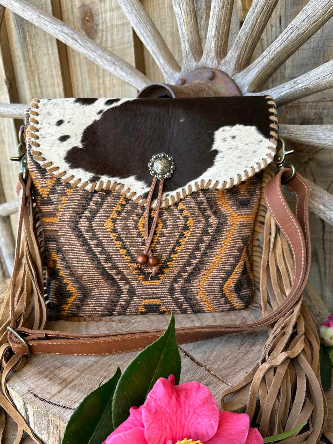 Next: Western Hide Recycled Canvas n Hide Tribal Print Crossbody