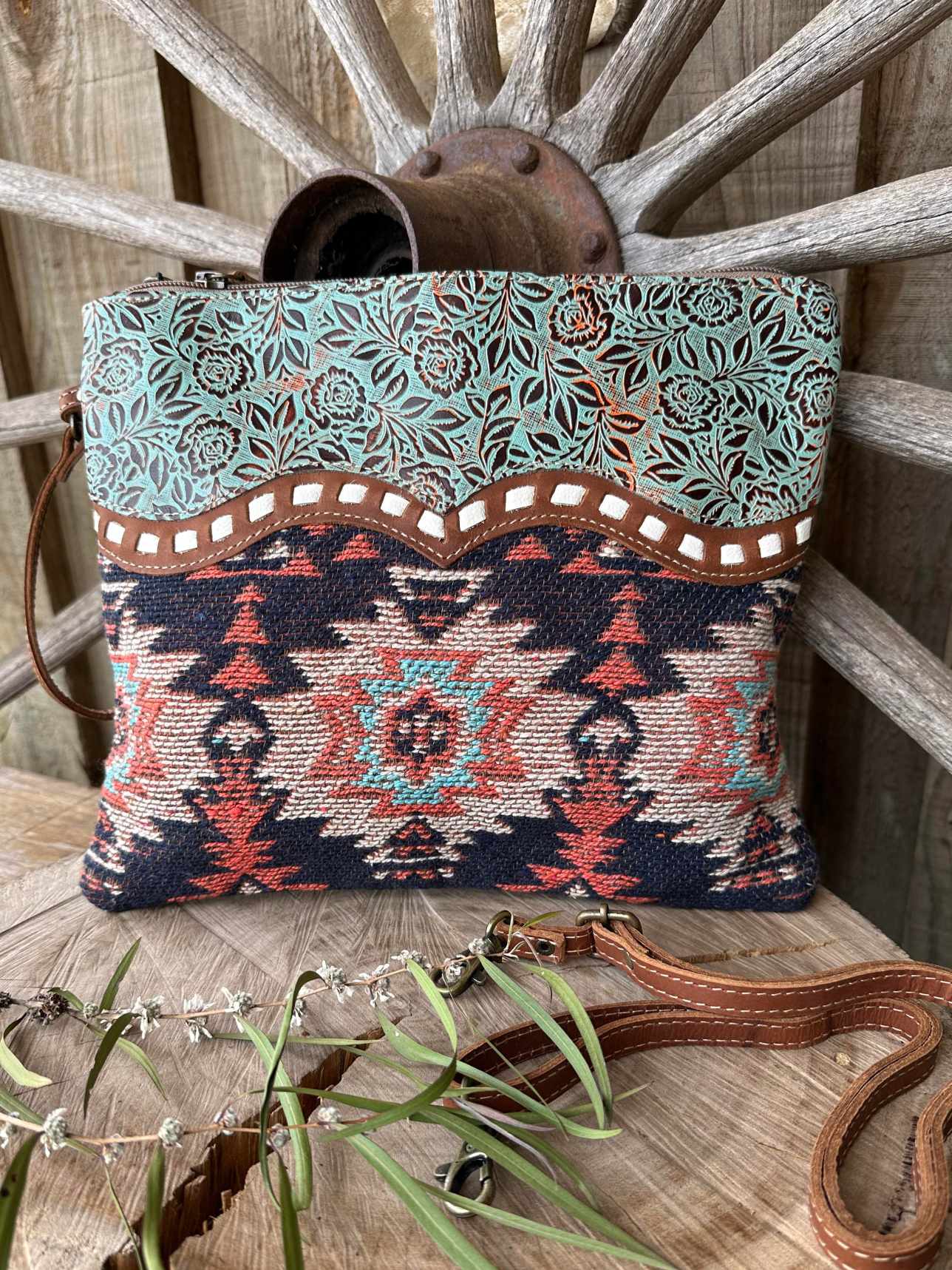 Western Lether Recycled Canvas Crossbody Handbag