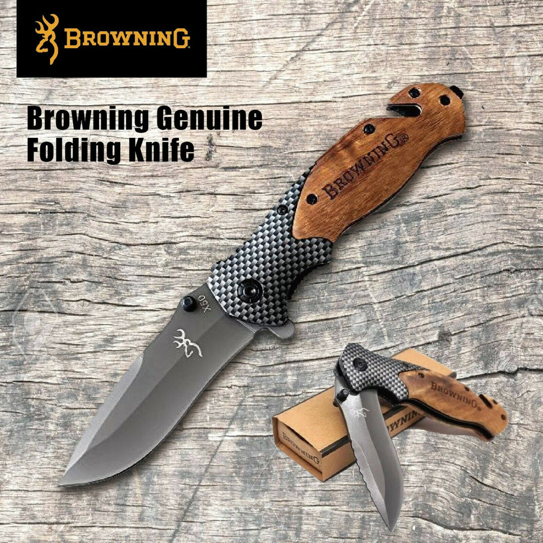 Knive - Pocket Knife Browning Style Wooden Detail