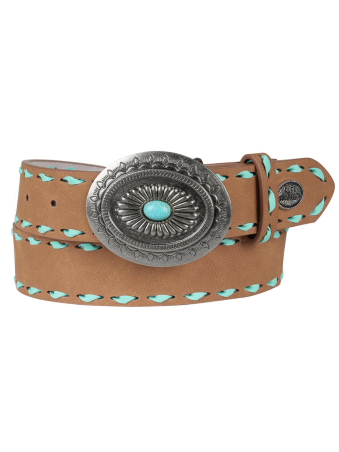 Tooled strap, feature conchos with turquoise stones, turquoise and metal studs, removable