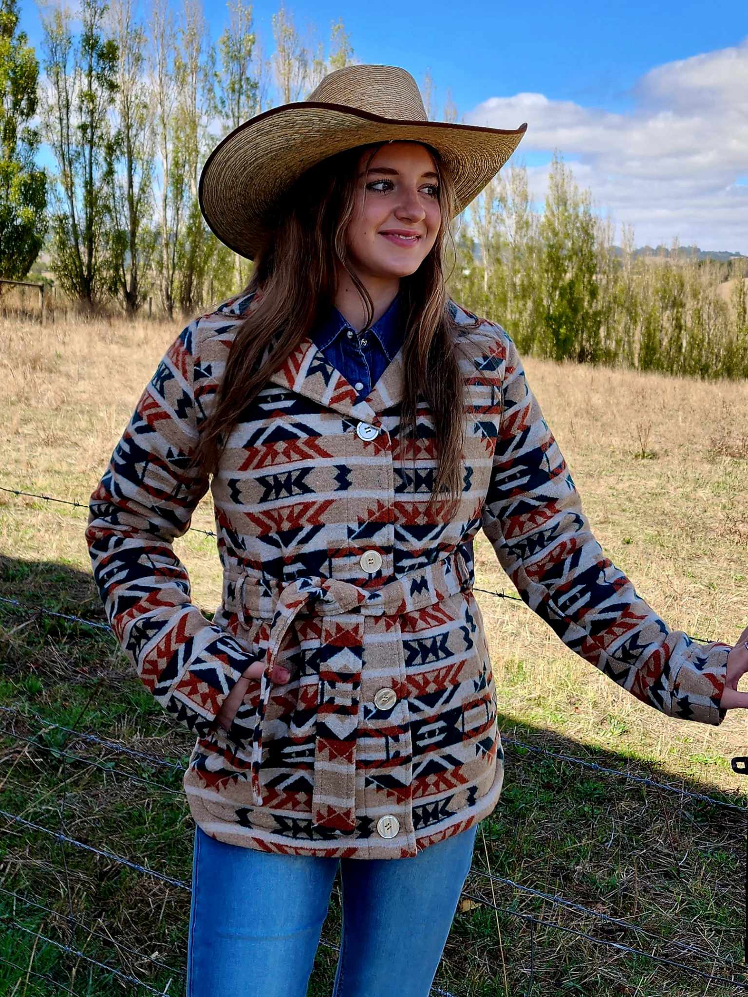 Stay warm and stylish this season with the Outback Trading Women’s Skyler Jacket. This timeless piece is designed with a warm Berber lining and completed with a great Aztec pattern. Perfect for those cool fall days!