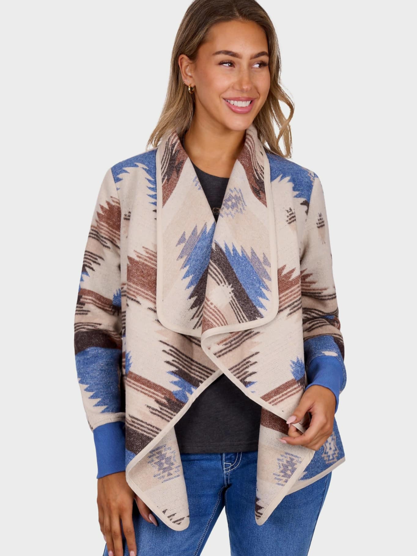 Zip Up - Edna Hoodiecontrast rib & drawcorddetail, feature Aztec Print Hood and Bodie, weltpockets at front