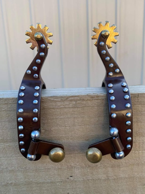 Next: Spurs - Youth antique brown steel spurs with Silver studs