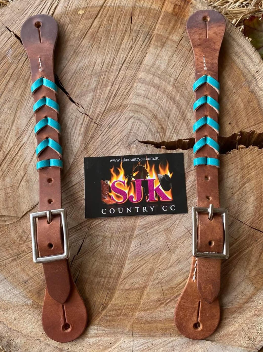 Harness Leather Braided Ladies Spur strap with accent leather color and buckles.