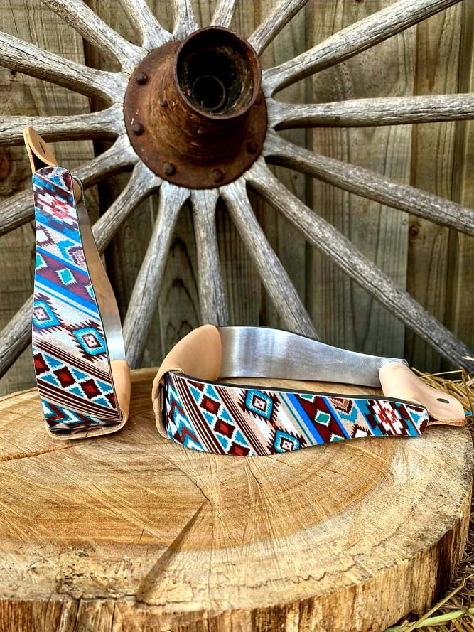 Black Aluminum stirrups with silver engraving and cut out diamond designs. Each stirrup has two cut out diamonds. Light colored leather grip tread.