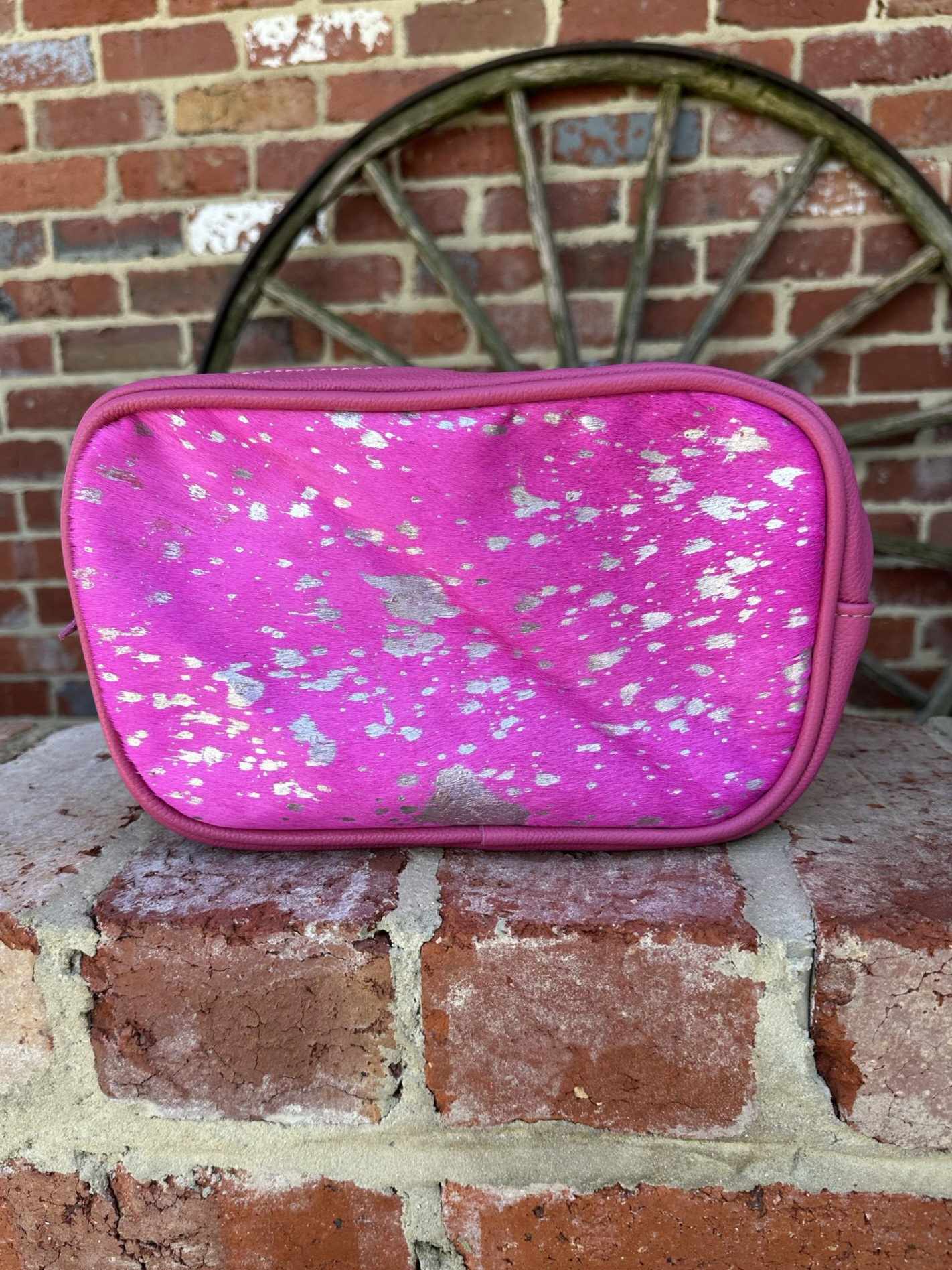 The azure specks add an elegant glow to this utility kit. You can carry it with easy because of the handle and the fringe zipper shuts close to ensure safe storage.